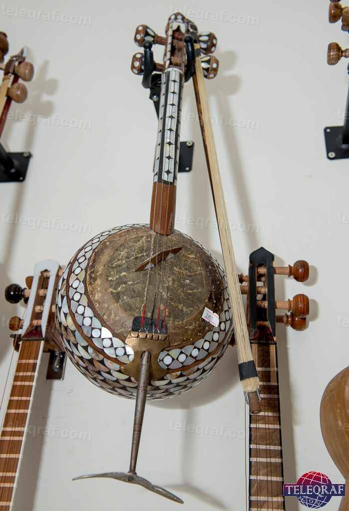 Mağazada kamança musiqi aləti də satılır. Sədəfli düzələn kamançanın yaşı 100, qiyməti isə 2200 manatdır...