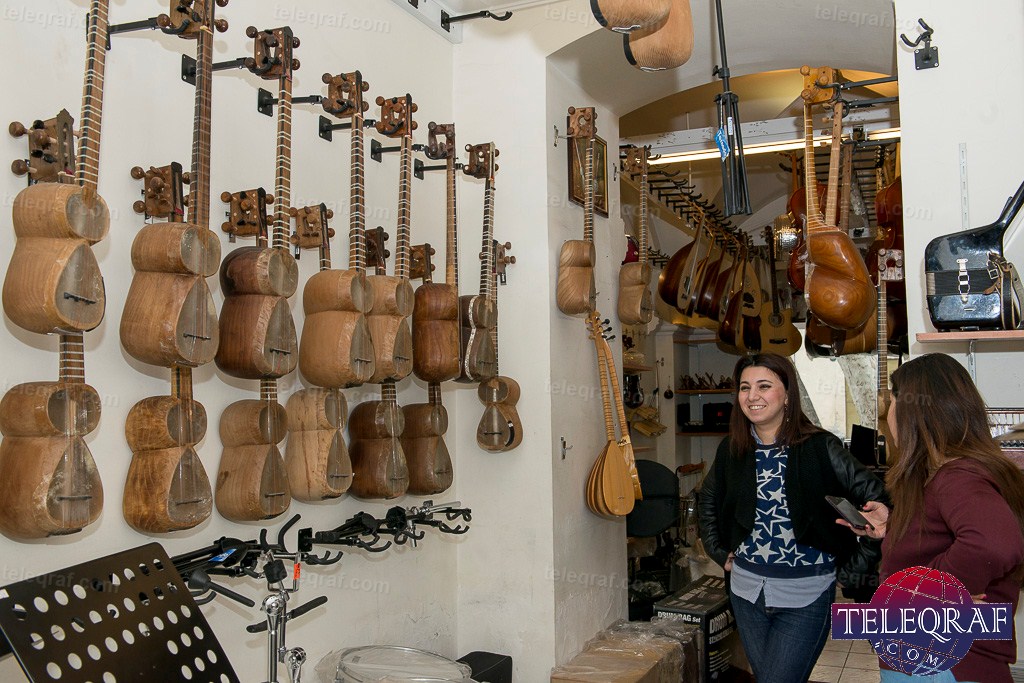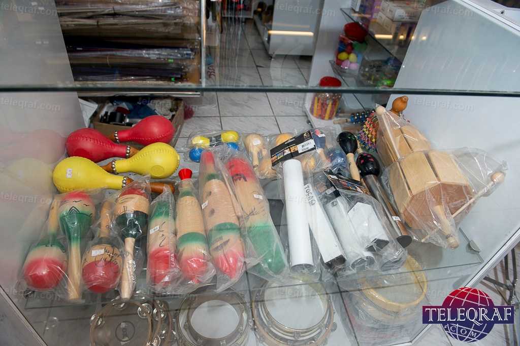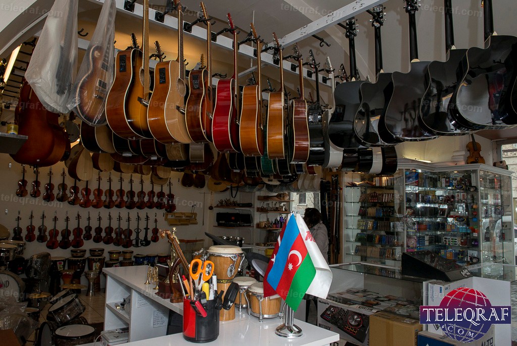 Mağazanın bir hissəsi milli musiqi alətlərə həsr edilib. Tar, kamança gözə dəyir.