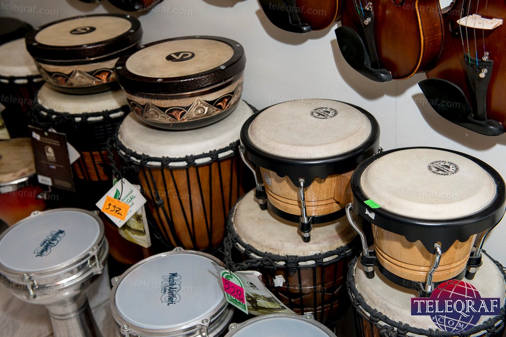 Mağazadakı musiqi alətləri Bolqarıstan, Türkiyə, İspaniya, Yaponiya, İndoneziya, Çindən gətirilir.