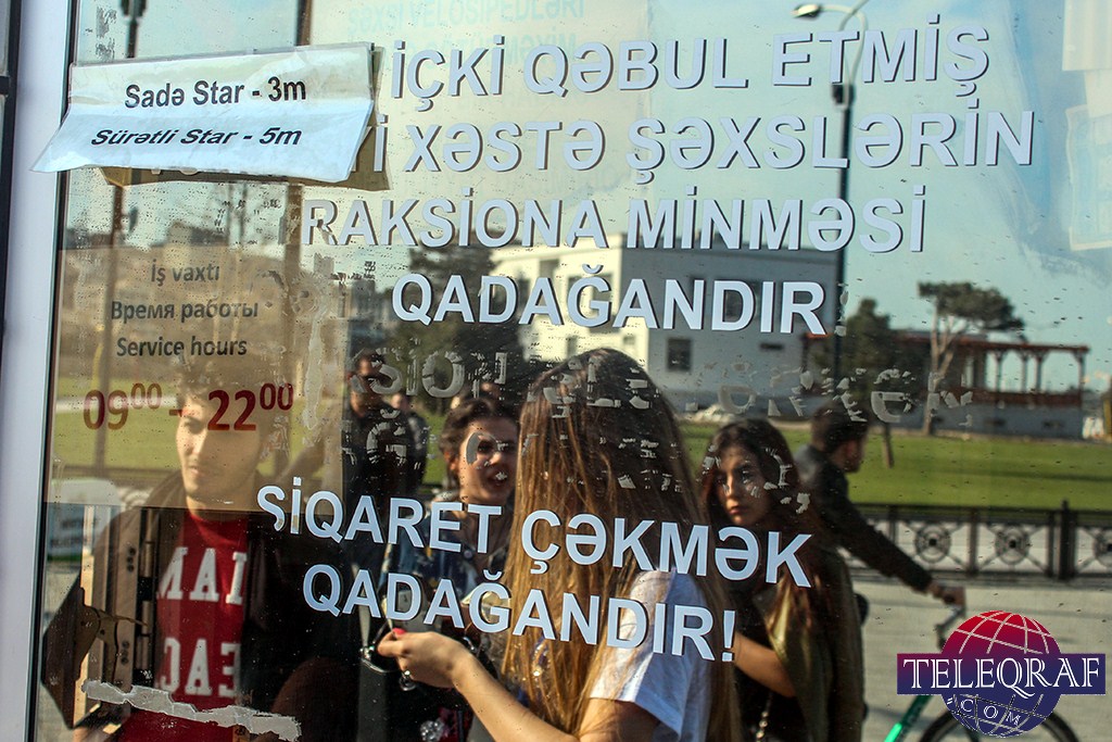 İlk kassaya yaxınlaşıb, qiymətlərlə maraqlandıq. Sadə velosipedin 1 saatı 3 manat, sürətli velosipedin saatı isə 5 manatdır. Velosipedi icarəyə götürmək üçün şəxsiyyət vəsiqəsini təqdim etmək lazımdır.