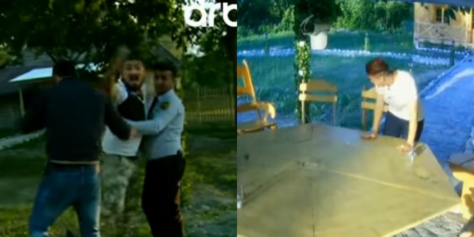 İki iştirakçı arasında yaranan qalmaqala ətrafdakılar müdaxailə edib. Hətta vəziyyət o yerə çatıb ki, mühafizə əməkdaşı da davaya müdaxilə edib.