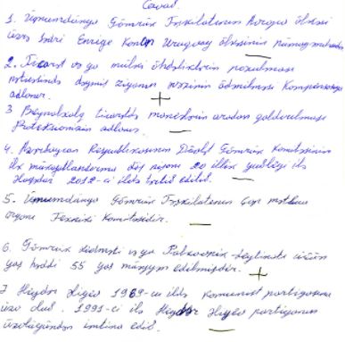Xələfov Əli Abbasəli oğlu 7 sualdan sadəcə 5-nə cavab verib ki, bunlardan yalnız biri doğrudur.