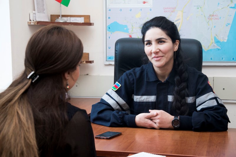 Həmsöhbətim Fövqəladə Hallar Nazirliyi Xüsusi Riskli Xilasetmə Xidməti Çevik Xilasetmə İdarəsinin bölmə rəisi, baş gizir Leyla Əliyevadır. Leyla xanım söhbətinə belə davam edir: