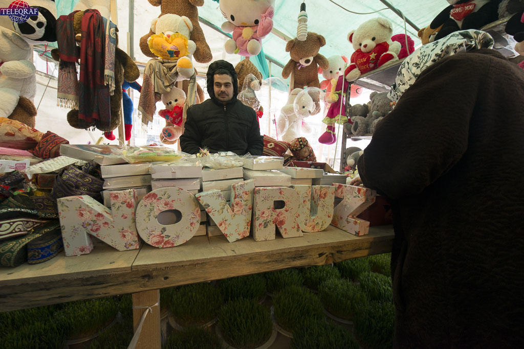 Doğrusu, bazar elə də tünlük deyildi, alıcı gözə az dəyirdi. İlk olaraq girişdə Novruz bayramının atributu olan səmənilərin qiyməti ilə maraqlandıq. Ürək, buta və sair formalarda səmənilər satılır. Qiymətlər həcm və bəzəyə görə dəyişir. Kiçik səmənilər 3-5, daha böyük və üzərində göyərçin oyuncağı olanlar isə 7-15 manatdır.