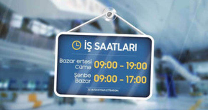 Həmin tarixdən “ASAN xidmət” və “ASAN Kommunal” mərkəzləri həftənin bazar ertəsi – cümə günləri saat 09:00-dan 19:00-dək, şənbə və bazar günləri isə 09:00-dan 17:00-dək fəaliyyət göstərəcək. Yalnız “ASAN Kommunal” mərkəzlərində bazar günü qeyri-iş günüdür.