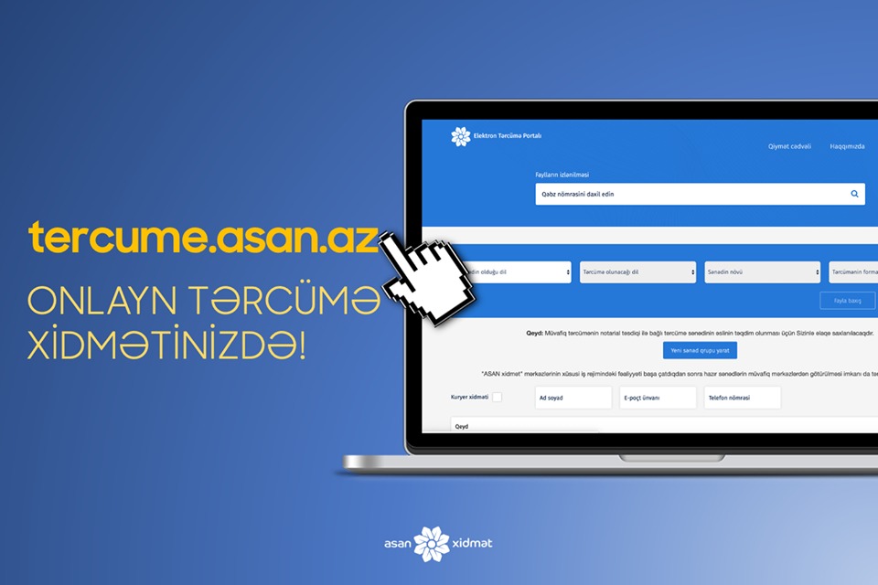 İstifadəyə verilmiş www.tercume.asan.az onlayn tərcümə saytı vasitəsi ilə sənəd və ya mətnlərin tərcüməsini elektron qaydada həyata keçirmək mümkündür. Hər hansı vətəndaş və ya ölkəmizdə olan əcnəbi şəxs sayt vasitəsilə tərcümə olunacaq məlumatı yükləyib tərcümə dilini seçə bilər.