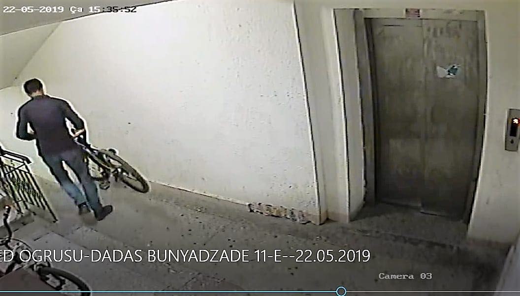 Zərərçəkən bildirib ki, 22 may 2019-cu il tarixdə baş verən hadisənin görüntülərində oğrunun bütün davranışları aydın əksini tapıb. Həmin görüntülər diskə yazılıb: "Görüntüləriə baxdıq. Oğrunun hansı istiqamətdən gəldiyi, bloka necə daxil olduğu, velosipedi necə oğurladığı, hansı istiqamətdə getdiyi tam məlumdur.
