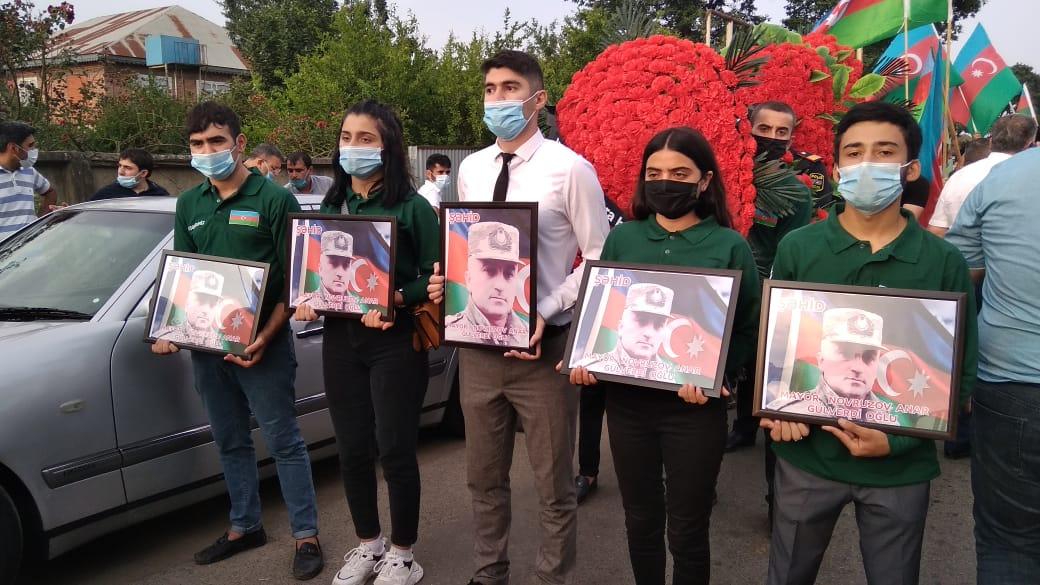 Azərbaycan-Ermənistan dövlət sərhədində düşmən tərəfinin təxribatları nəticəsində qəhrəmancasına həlak olan 1976-cı il təvəllüdlü, Azərbaycan Silahlı Qüvvələrinin mayoru Novruzov Anar Gülverdi oğlunun tabutu doğulduğu Masallı rayonuna gətirilib.