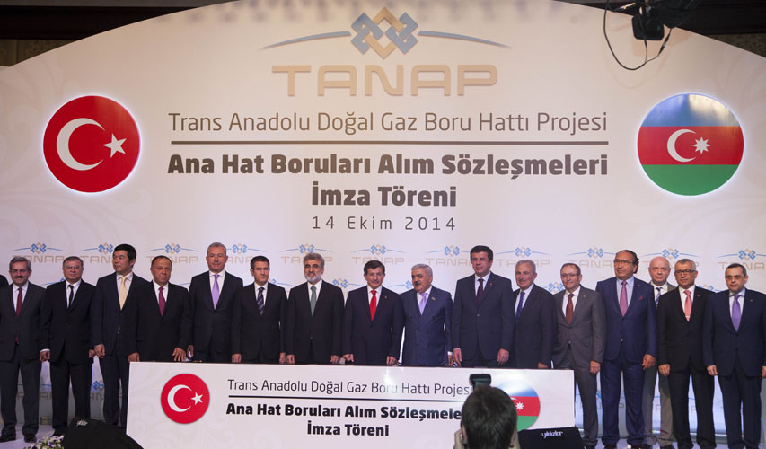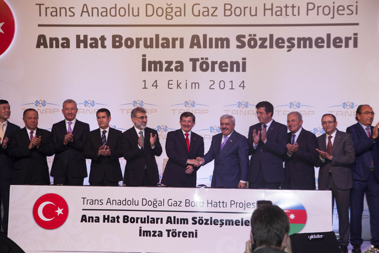 Oktyabrın 14-də Turkiyədə “Şah Dəniz-2” sahəsındən çıxarılacaq təbii qazın Türkiyə ərazisi ilə Avropaya nəqlini nəzərdə tutan Trans Anadolu Təbii Qaz Boru Xəttinin Ana Xətt Borular və Modul Dirsəklərinin Alınması Müqavilələri imzalanıb. Teleqraf.com-un məlumatına görə, imzalanma mərasimində Türkiyənin Baş naziri Əhməd Davudoğlu, energetika və təbii ehtiyatlar naziri Taner Yıldız, Azərbaycan Respublikası Dövlət Neft Şirkətinin prezidenti Rövnəq Abdullayev və digər rəsmi şəxslər iştirak ediblər.