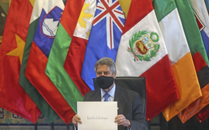 Azərbaycan Respublikasının Meksikadakı Səfirliyindən Teleqraf.com-a verilən məlumata görə, videkonfrans formatında keçirilmiş mərasimdə M.Talıbov ilk olaraq, Prezident Fransisko Saqastiyə Azərbaycan Respublikasının Prezidenti İlham Əliyevin səmimi salamlarını çatdırıb.
