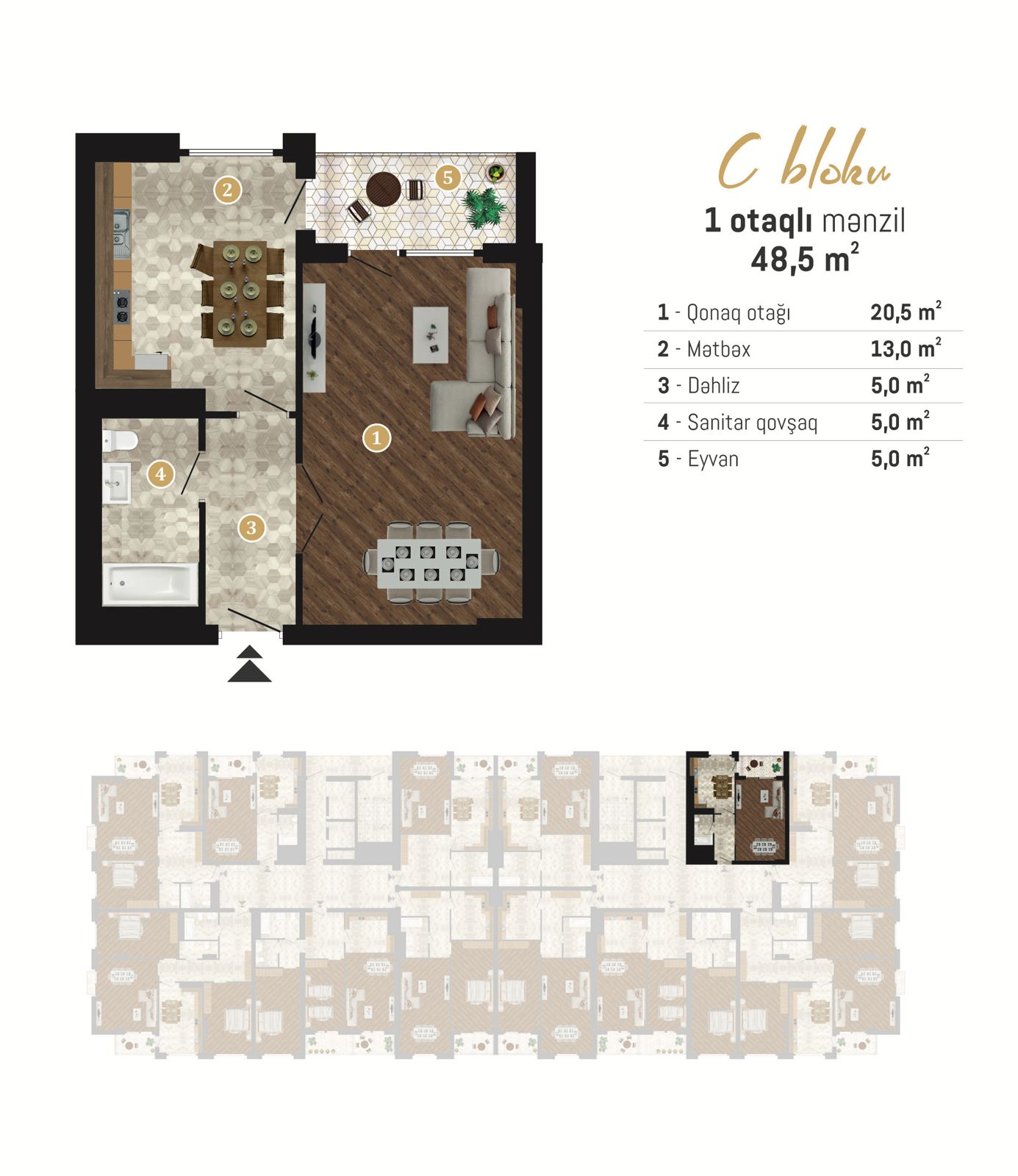 1 m2 - 1250 man, 30 faiz ilkin ödəniş şərti ilə 36 ayadək ödəmə imkanı təklif edilir.