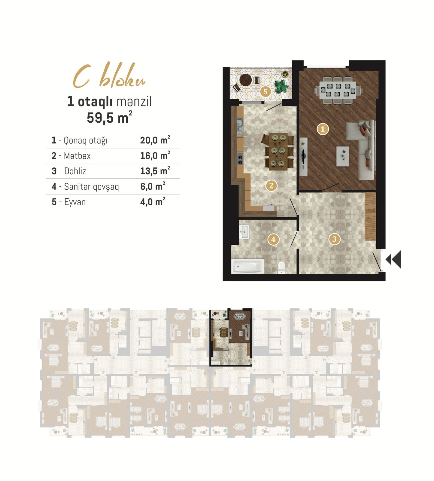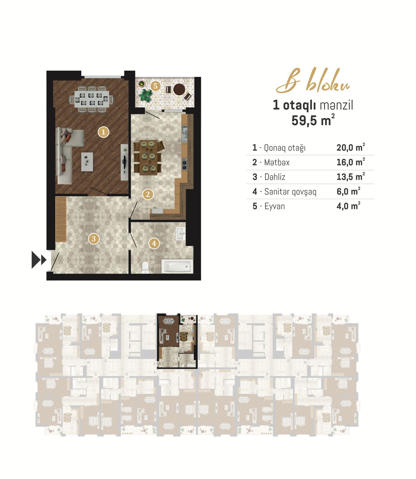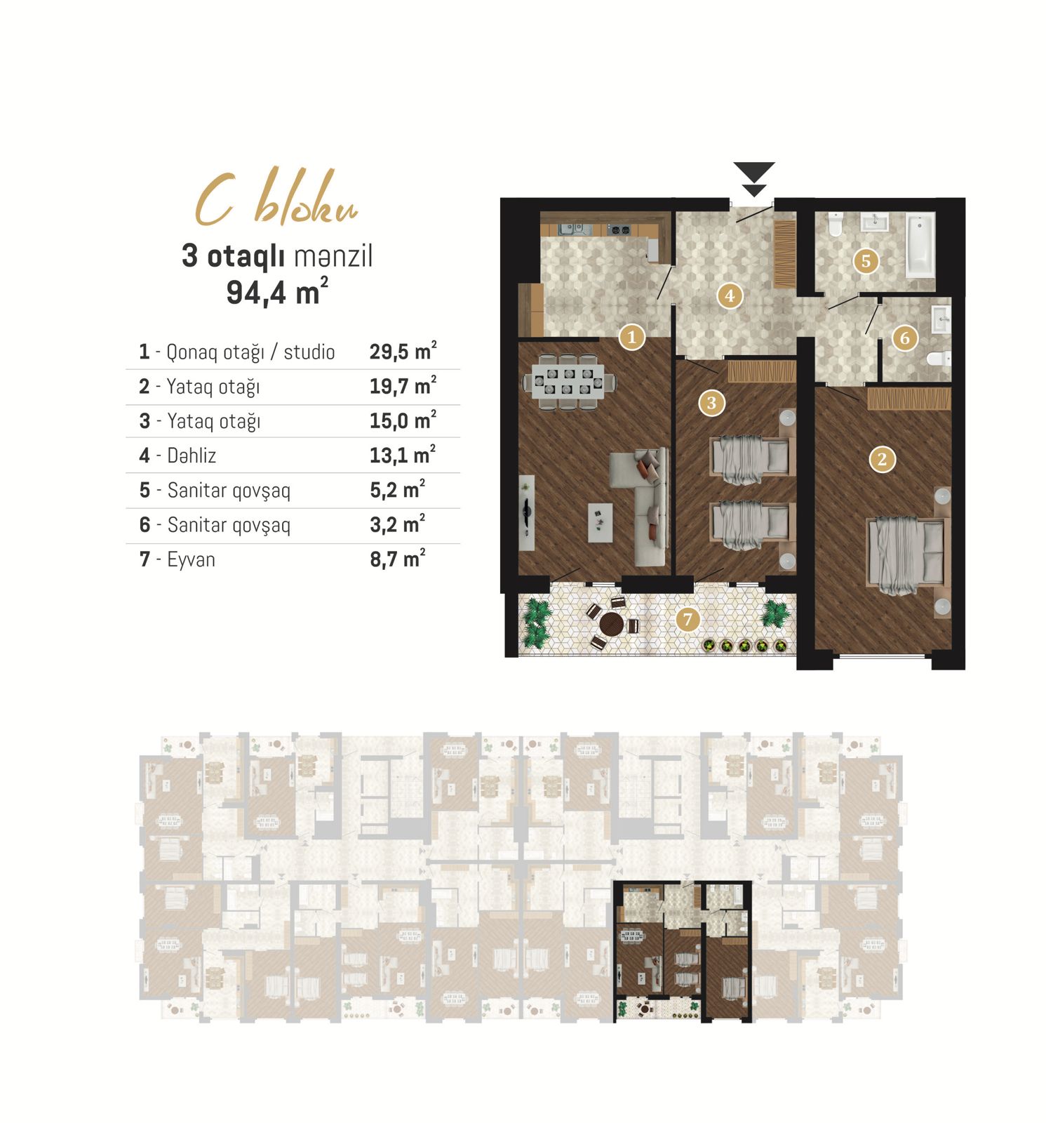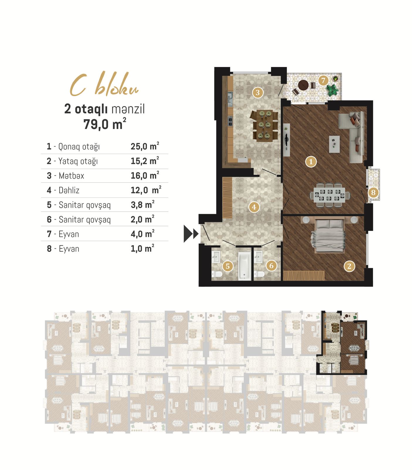 Hazırda B və C bloklarının tikintisinə başlanılıb, 6 ay sonra A blokunun tikintisinə başlanılacaq. B və C blokları 24 aya, A bloku 30 aya təhvil veriləcək. A bloku 17 mərtəbə, B və C blokları 15 mərtəbədir.