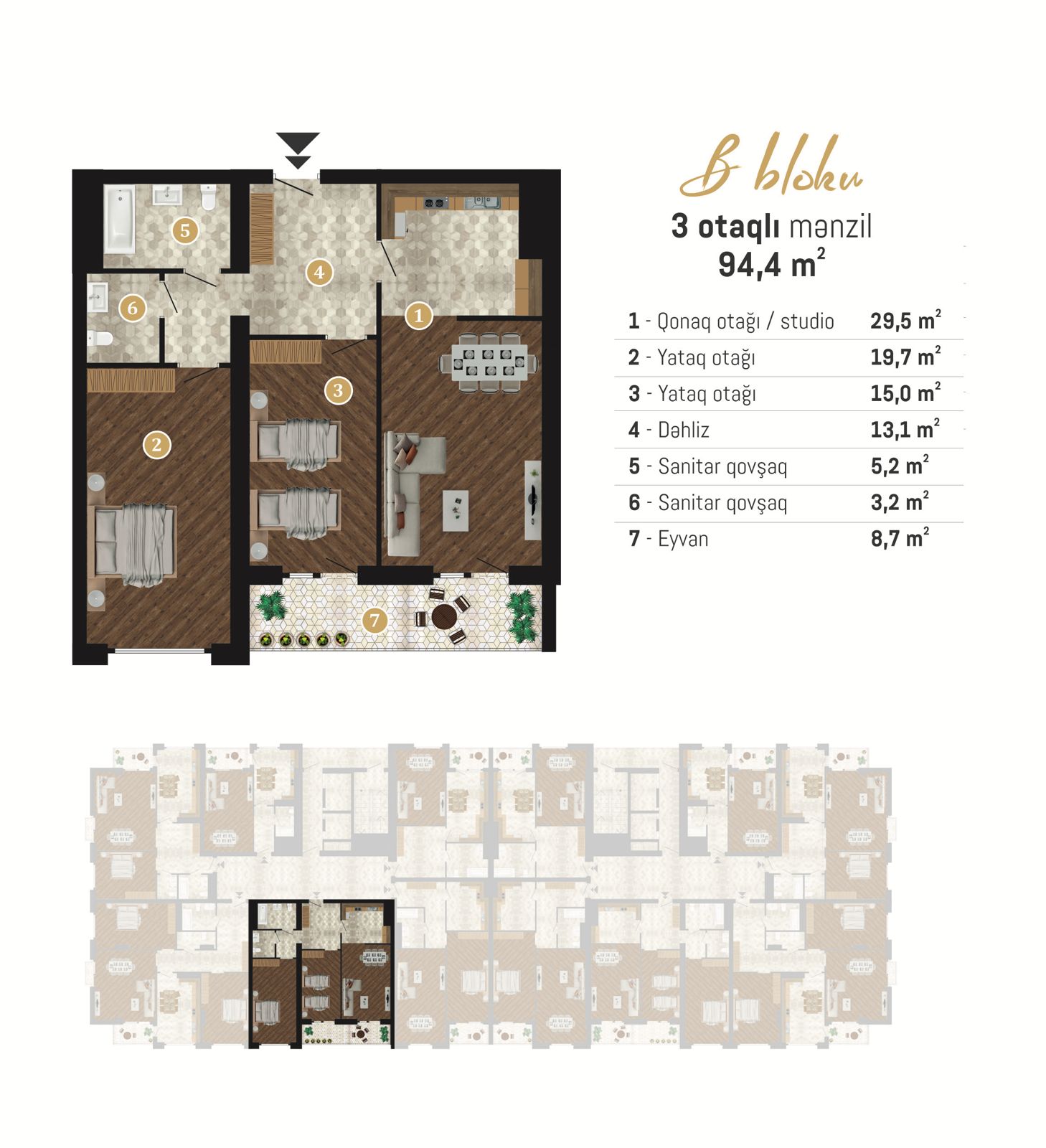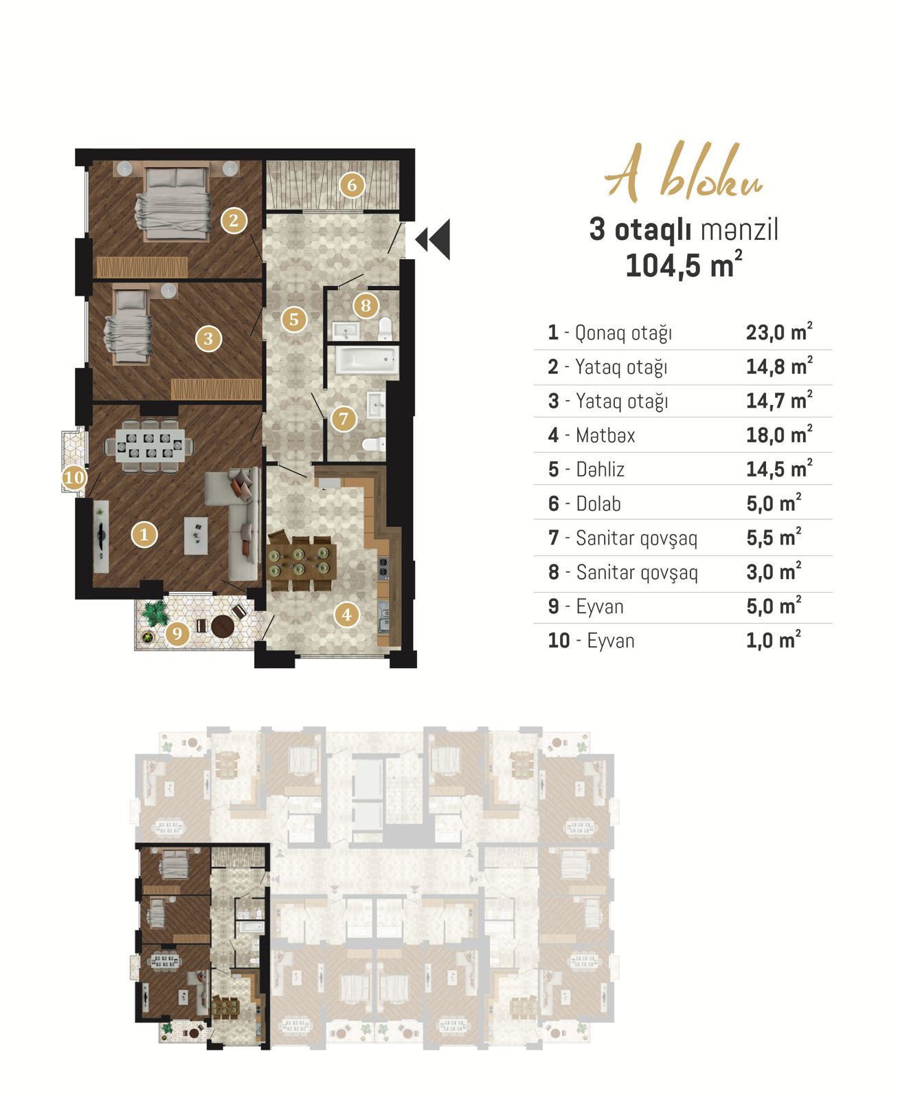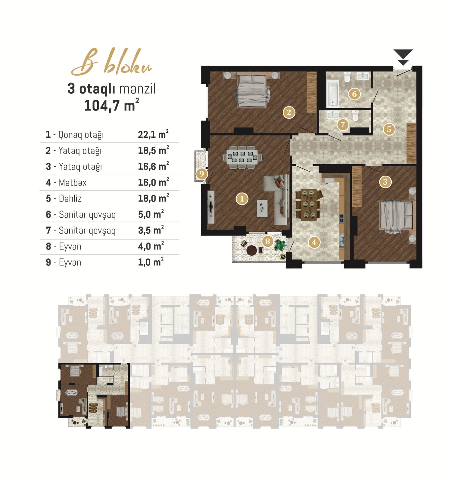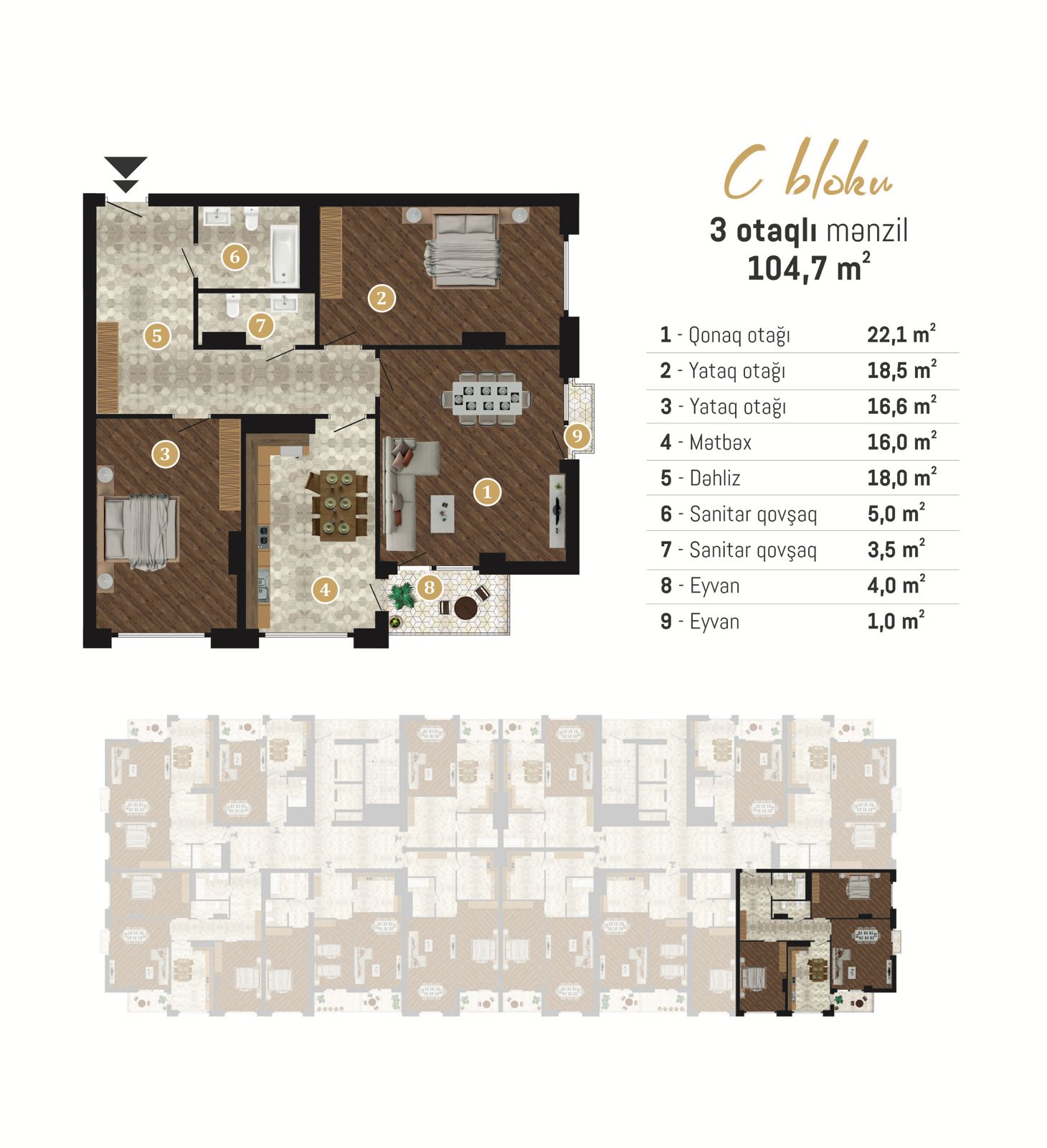 Hazırda B və C bloklarının tikintisinə başlanılıb, 6 ay sonra A blokunun tikintisinə başlanılacaq. B və C blokları 24 aya, A bloku 30 aya təhvil veriləcək. A bloku 17 mərtəbə, B və C blokları 15 mərtəbədir.