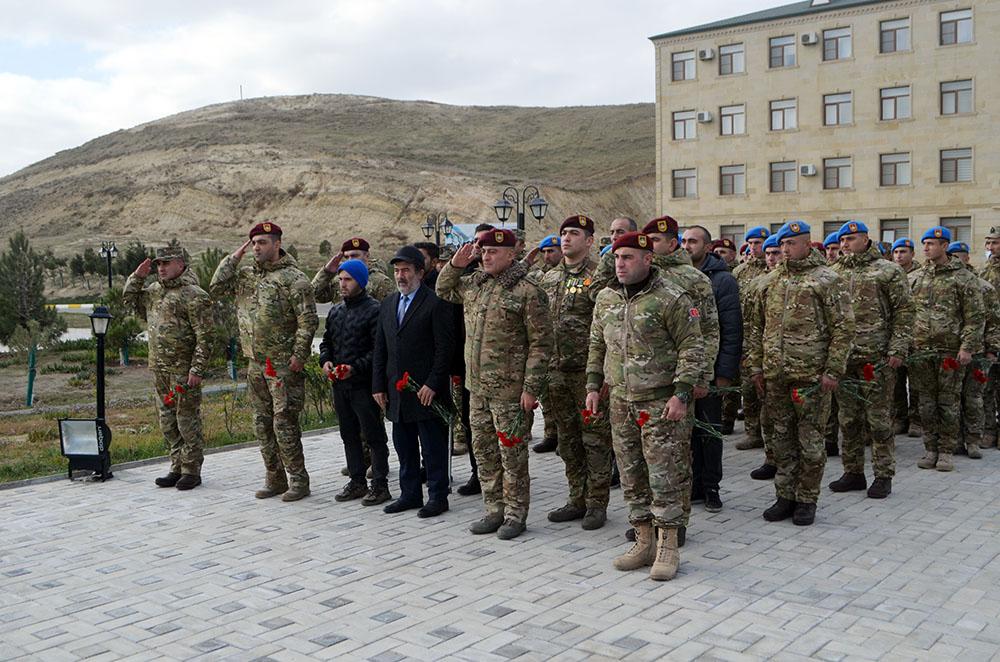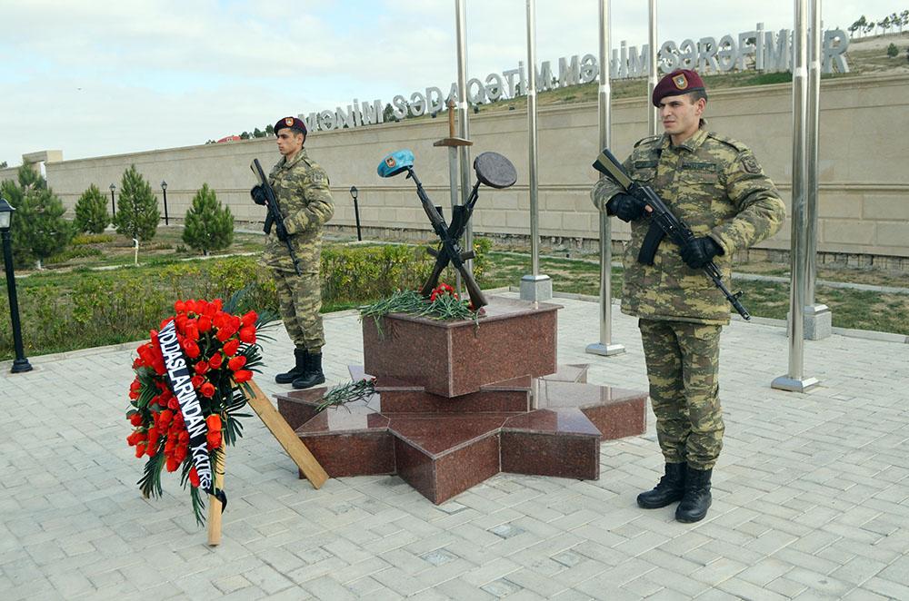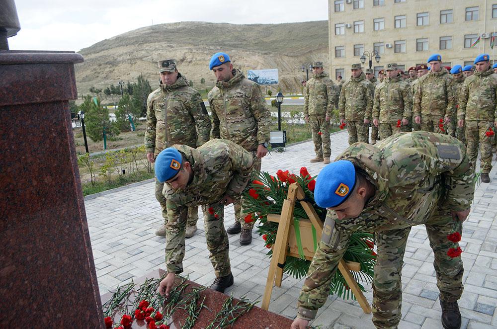 Teleqraf.com Müdafiə Nazirliyinə istinadən xəbər verir ki, əvvəlcə xalqımızın ümummilli lideri Heydər Əliyev və Azərbaycan Respublikasının ərazi bütövlüyü uğrunda şəhid olanların xatirəsi bir dəqiqəlik sükutla yad edilib.