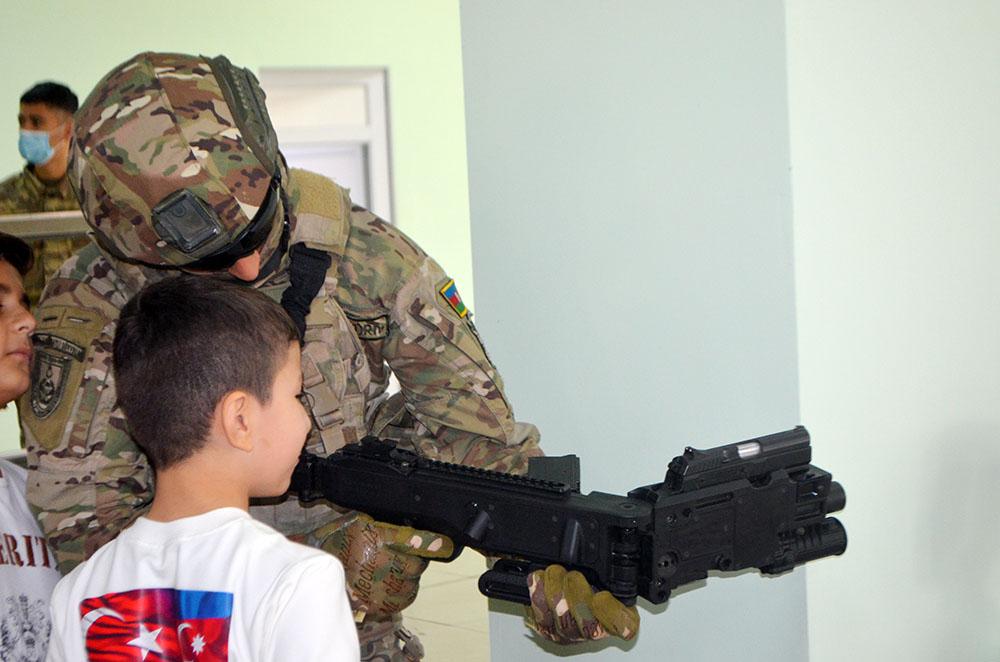 Balacalara müasir atıcı silahlar nümayiş etdirilib, onları maraqlandıran suallar cavablandırılıb.