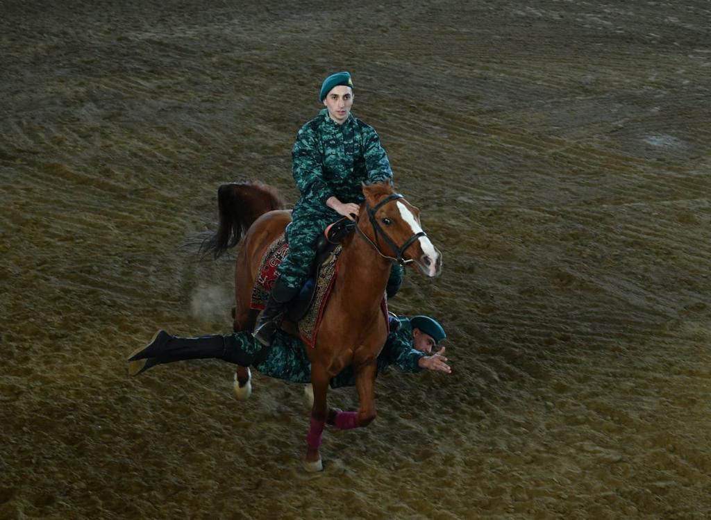 “Süvarilər” qrupu Qarabağ və Dilbaz atları üzərində qapalı manejdə xüsusi proqram nümayiş etdirmiş, açıq manejdə “Konkur” komandası nümunəvi çıxışlar etmiş, “Polo” və “Cövkən” komandalarının oyununa baxış keçirilmişdir.