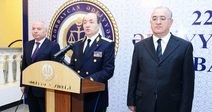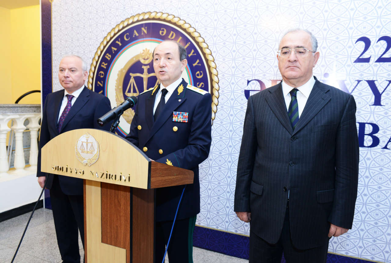 Ədliyyə naziri tədbirə açaraq peşə bayramı münasibətilə bütün ədliyyə və məhkəmə orqanlarının işçilərini təbrik edib, Azərbaycan ədliyyəsinin şanlı tarixindən və inkişaf yolundan, ümummilli liderimiz Heydər Əliyevin ölkəmizə rəhbərliyinin bütün dövrlərində bu sahəyə göstərdiyi diqqət və qayğıdan bəhs edib, möhtərəm Prezidentimiz cənab İlham Əliyevin rəhbərliyi ilə son illər bütün sahələrdə sürətli tərəqqiyə nail olunmasını, o cümlədən ədliyyə və məhkəmə sisteminin müasirləşdirilməsi üzrə əldə olunan nailiyyətləri vurğulayıb, ölkəmizin Avropa Şurası Nazirlər Komitəsində uğurlu sədrliyini və keçirilən tədbirləri, bütövlükdə beynəlxalq aləmdə Azərbaycanın mövqeyinin və nüfuzunun daha da yüksəlməsini qeyd edib.