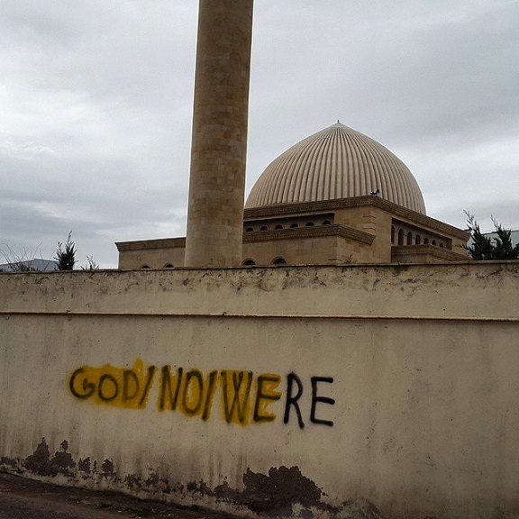 Publika.az xəbər verir ki, Sumqayıtdakı məscidlərdən biri təhqir edilib. 6-cı mikrorayondakı Cümə Məscidi olduğu ehtimal edilən Allahın evinin divarlarına ingilis dilində "Allah yoxdur" (God No Were) ifadəsi yazılıb. Fotonon Facebook sosial şəbəkəsində yayılması dindarların ciddi narazılığına səbəb olub.