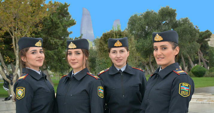 "Qadın paqondaşlarımızın böyük bir qismi Daxili Qoşunlarda, Əlahiddə Çevik Polis Alayında, istintaq, təhqiqat, kadrlar və yetkinlik yaşına çatmayanlarla iş, pasport-qeydiyyat, informasiya-kommunikasiya, statistika, mətbuat, beynəlxalq əməkdaşlıq, maliyyə, tibb, təhsil sahələrində, “102” və “Təhlükəsiz Şəhər” qurumlarında, “ASAN xidmət” mərkəzlərində fəaliyyət göstərir, kişi həmkarları ilə bərabər cinayətkarlığa qarşı mübarizə, asayişin və təhlükəsizliyin qorunması kimi mühüm vəzifələri layiqincə yerinə yetirirlər".