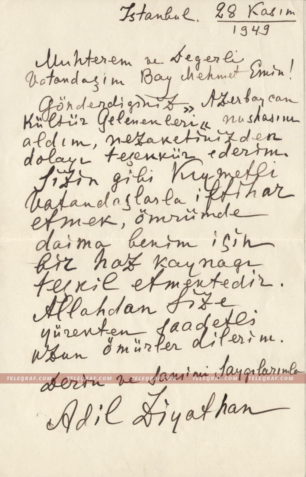 Adil xan İstanbul Universitetində çalışdığı üçün Köprülü ilə yaxın münasibət qura bilib. F.Köprülü ilə bağlı materialları tədqiq etdiyimiz zaman Adil xanın bu məktubu niyə göndərdiyini də aşkar etdik. Belə ki, 1939-cu il il martın 4-də İstanbul Universitetində Fuad Köprülünün tədrisat həyatının 25-ci ildönümü münasibətilə konfrans keçirilib. Tədbiri Əli Nihad Tarlan açıb, geniş nitq söyləyib.