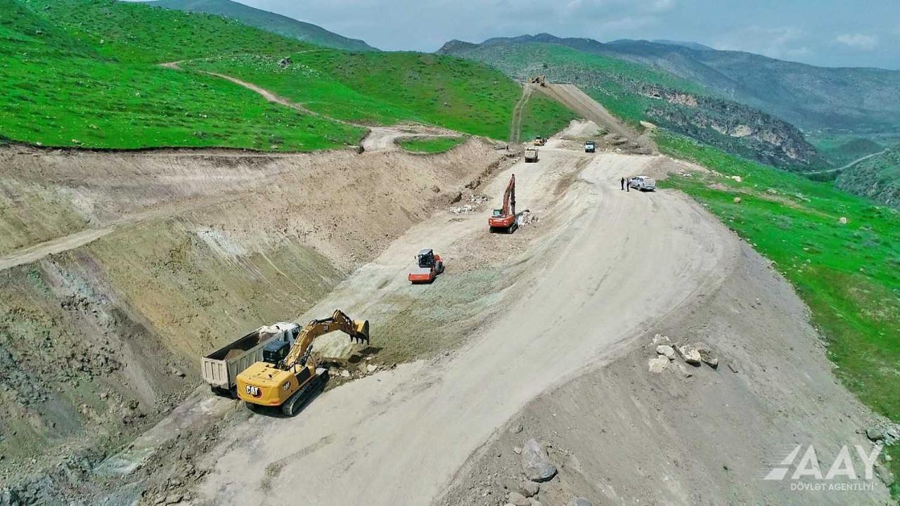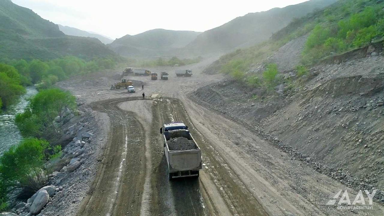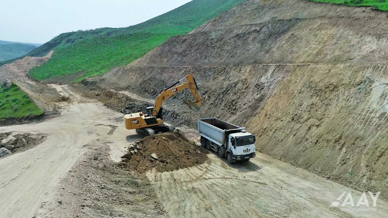 Layihəyə uyğun olaraq yolun 26-km-lik hissəsində yararsız qruntun və torpaq yatağının genişləndirilməsi üçün bitki qatının çıxarılması, qazma, əks dolğu, dağ yamaclarının kəsilməsi, dağlarda qırıcı üsulu ilə yol yatağının layihə səviyyəsinə gətirilməsi və tikintisi icra edilir.