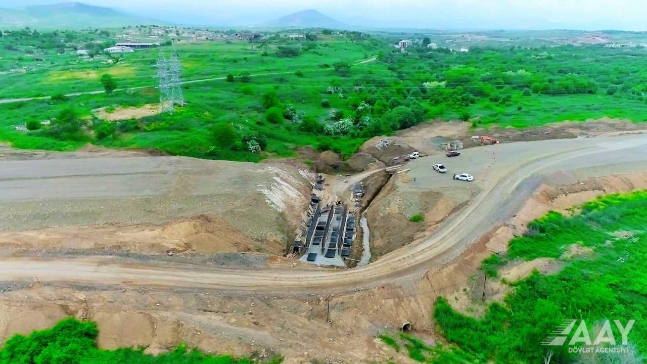 Bundan başqa yolun 6.7 kilometrində, “Qarğabazarı” adlanan ərazidən keçən hissəsində iki aşırımlı avtomobil körpüsündə svay üçün hazırlıq prosesi aparılmaqla tikintisi davam etdirilir.