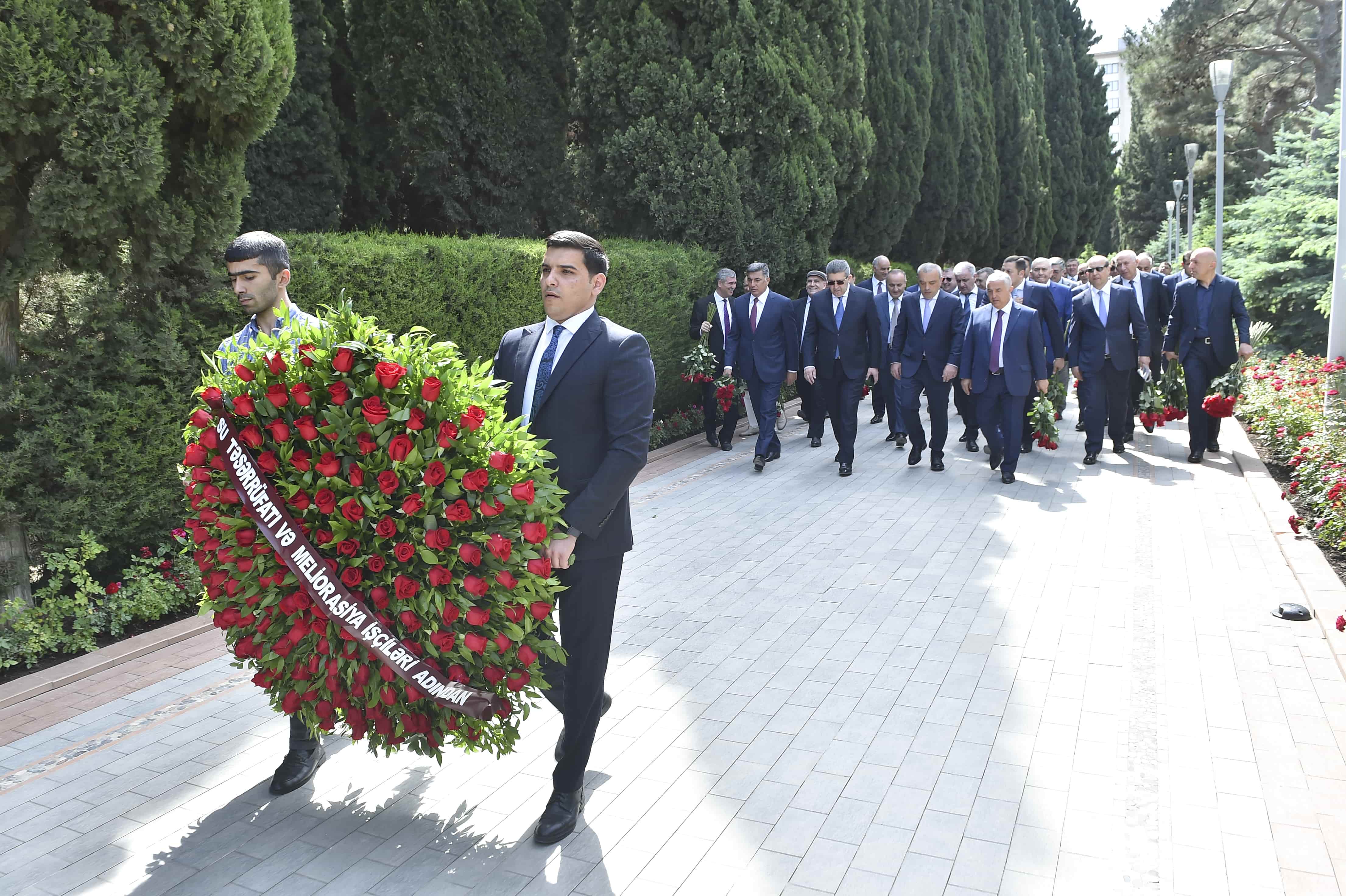 Teleqraf.com xəbər verir ki, “Su təsərrüfatı və meliorasiya işçiləri günü” ərəfəsində “Azərsu” ASC-nin sədr müavini Köçərli Həsənov, Meliorasiya və Su Təsərrüfatı ASC-nin sədri Zaur Mikayılov, hər iki təşkilatın kollektivi Fəxri Xiyabana gələrək xalqımızın ümummilli lideri, müasir müstəqil dövlətimizin memarı və qurucusu Heydər Əliyevin xatirəsini yad edib, məzarı önünə əklil qoyublar. Görkəmli oftalmoloq-alim, akademik Zərifə xanım Əliyevanın da xatirəsi anılıb. Sonra Şəhidlər Xiyabanında Azərbaycanın müstəqilliyi və ərazi bütövlüyü uğrunda canlarından keçmiş qəhrəman vətən övladlarının xatirəsi yad edilib.