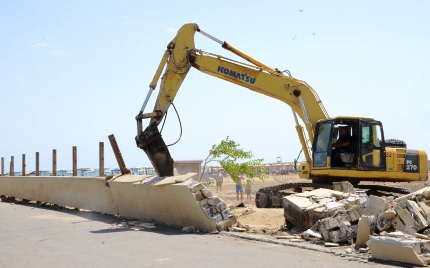 Buzovnada dəniz sahilindəki qanunsuz hasar və tikililər sökülür.