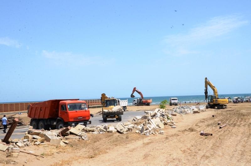Qeyd olunan qanunsuzluqların aradan qaldırılması, eləcə də ölkə başçısı cənab İlham Əliyevin Xəzər dənizinin sahilboyu ərazilərinin qanunvericiliyin tələblərinə uyğun olaraq bərpa edilməsi və insanların dəniz sahilinə sərbəst giriş-çıxışı təmin edilməsi ilə bağlı müvafiq Sərəncamının icrası məqsədi ilə səhər saatlarından etibarən Bakı Şəhər və Xəzər Rayon İcra Hakimiyyərlərinin, kommunal qurumların texnikaları və işçiləri tərəfindən Buzovna qəsəbəsində sahilyanı ərazilərdəki qanunsuzluqların aradan qaldırılmasına başlanılıb. Zəbt edilən torpaq sahələrinin hasarları, ərazidə bəzi sənədsiz tikililər, çimərlik ərazisinə daxil olmağa mane olan sədlər sökülür. Həmçinin kommunal xidmətlərin işçiləri tərəfindən qayalıq ərazilərinin müxtəlif tullantılardan təmizlənməsinə başlanılıb.