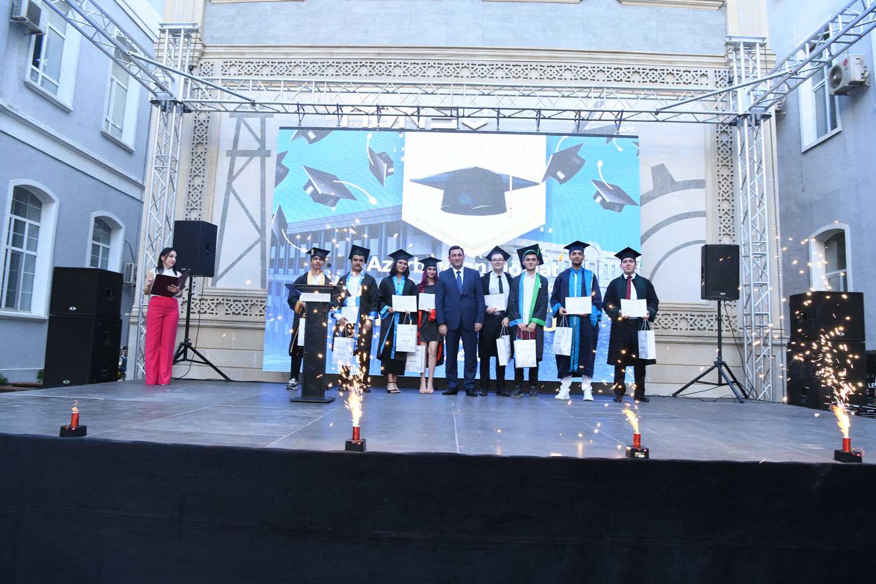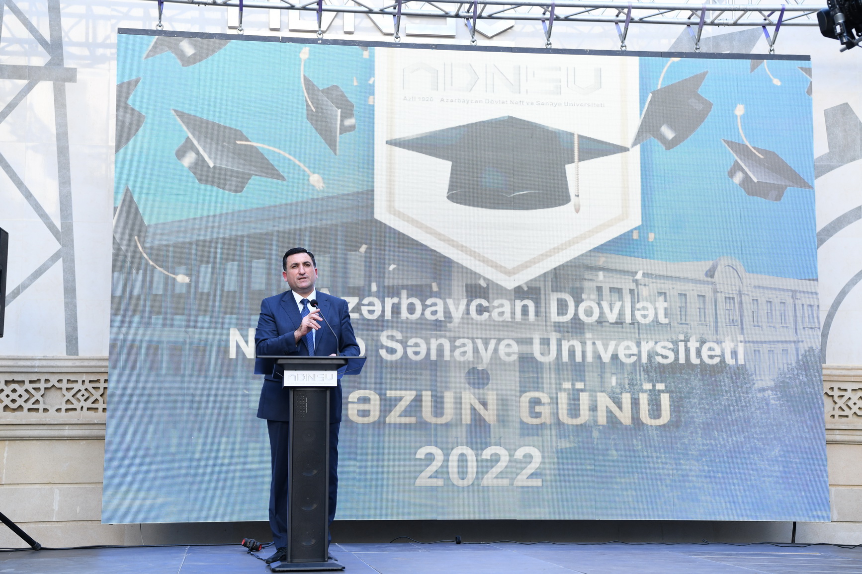 Teleqraf.com xəbər verir ki, dövlət himninin səslənməsi ilə başlanan tədbirdə ADNSU-nun rektoru, professor Mustafa Babanlı universiteti uğurla bitirən gəncləri bu əlamətdar gün münasibətilə təbrik edib, onlara gələcək fəaliyyətlərində uğurlar arzulayıb. Rektor universitet olaraq tələbə və məzunlarına hər zaman dəstək olmağa hazır olduqlarını deyib və həmçinin tələbələrə də bu təhsil ocağını bütün zamanlarda doğma ali təhsil müəssisəsi kimi sevməyi, ADNSU-nun adına layiq mütəxəssis kimi dövlətinə, xalqına xidmət etməyi tövsiyə edib.
