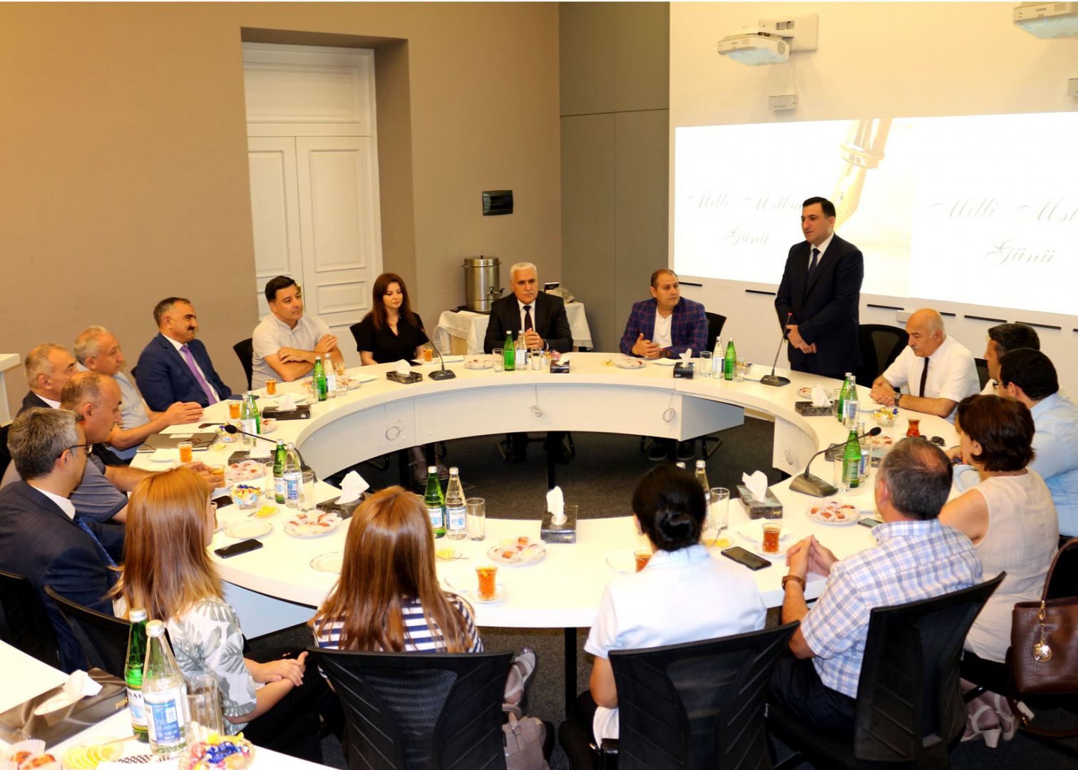 İyulun 21-də Azərbaycan Dövlət Neft və Sənaye Universitetinin (ADNSU) rektoru, professor Mustafa Babanlı 22 iyul - Milli Mətbuat Günü münasibətilə kütləvi informasiya vasitələrinin (KİV) nümayəndələri ilə görüşüb.