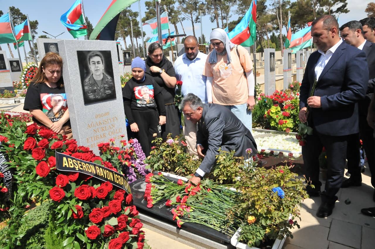 Müzəffər Ali Baş Komandan, Azərbaycan Respublikasının Prezidentinin İlham Əliyevin rəhbərliyi ilə xalqımızın qələbə qazandığı Vətən Müharibəsində igidliklə döyüşərək şəhid olan, “Vətən uğrunda” və “Ağdamın azad olunmasına görə” medallarına layiq görülən 1-ci Qarabağ Müharibəsi Qazisi Etibar Ağakişiyevin oğlu Nurlan Ağakişiyevin anadan olmasının 20-ci il dönümü qeyd edilib. Abşeron Rayon İcra Hakimiyyətinin başçısı Abdin Fərzəliyev, rayonun hüquq-mühafizə orqanlarının rəhbərləri, YAP Abşeron Rayon Təşkilatının sədri Abbas Əliyev, şəhid ailələri və qazilərlə birgə İkinci Fəxri Xiyabanda uyuyan şəhidimizin məzarını ziyarət edib, vətənimizin bütövlüyü uğrunda canından keçmiş bütün şəhidlərimizin əziz xatirəsi yad edilib, ruhlarına dualar oxunub, məzarları üzərinə tər çiçəklər düzülüb.