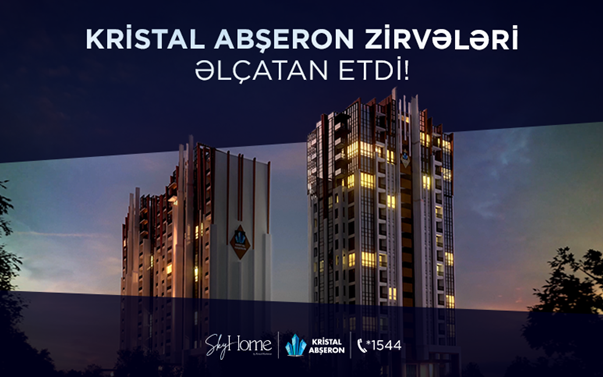 Kristal Abşeron müasir memarlığın zirvəsi olan “SkyHome” layihəsində sərfəli şərtlərlə mənzillər təklif edir. “SkyHome” Bakı şəhərinin ən görkəmli yerlərindən sayılan Tbilisi prospekti və Yasamal parkının yaxınlığında yerləşir. Gözlərinizin və ruhunuzun dincələcəyi bu məkanda tam təmirli və çıxarışlı mənzilləri 20 ilədək kredit imkanları ilə əldə etmək mümkündür.
