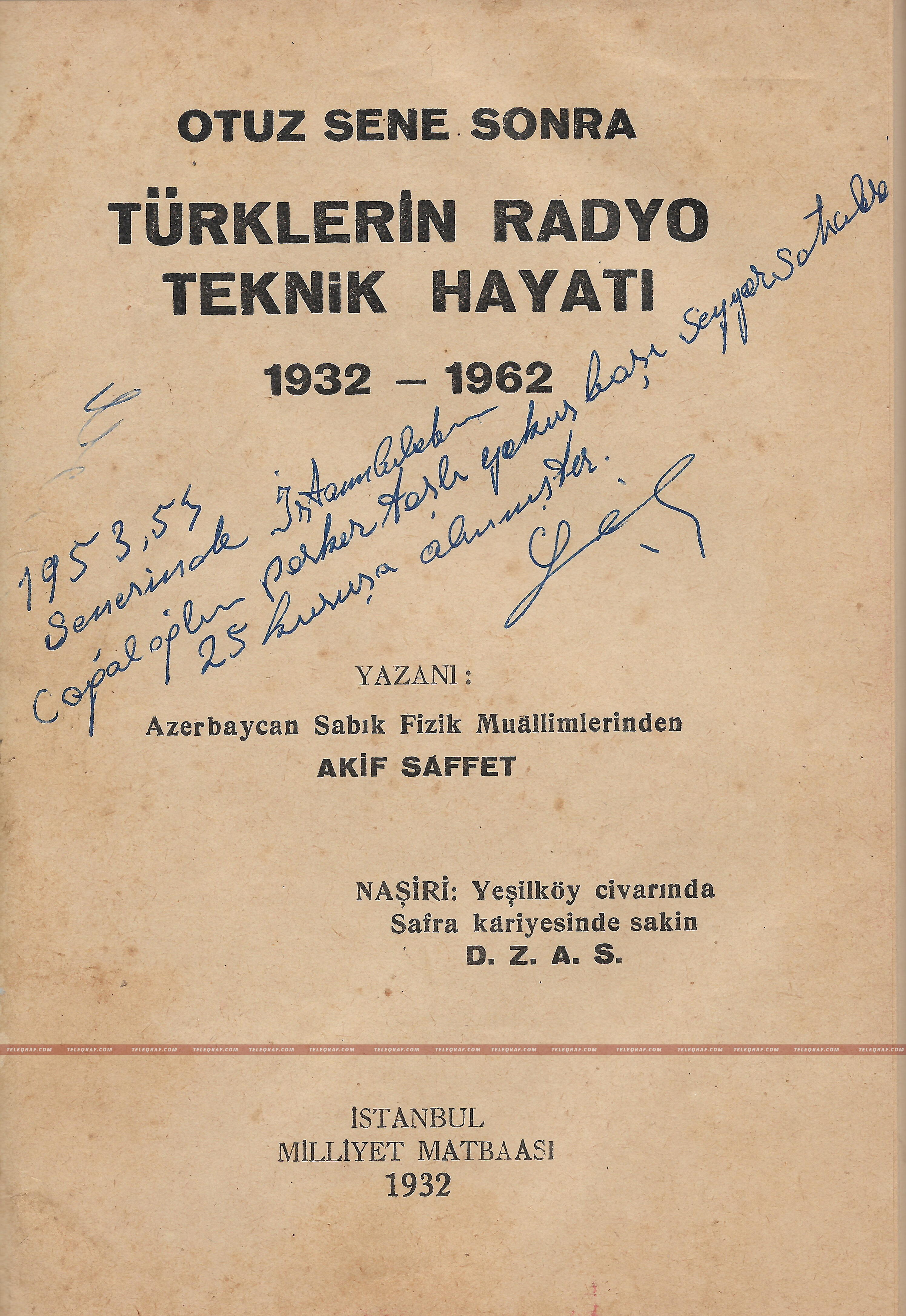 Akif Saffet imzası ilə əldə etdiyimiz ikinci əsərin adı belədir: “Otuz sene sonra Türklerin Radyo Teknik Hayatı. 1932-1962”.