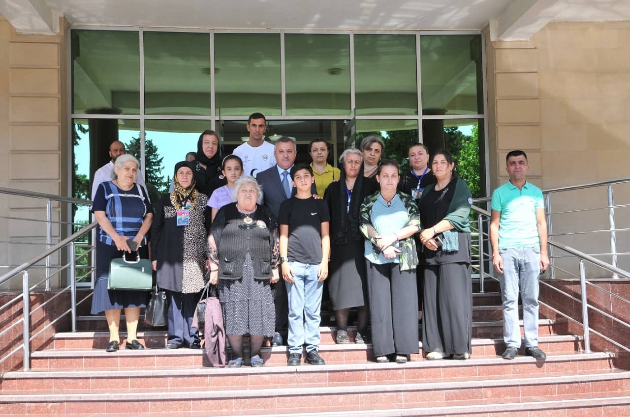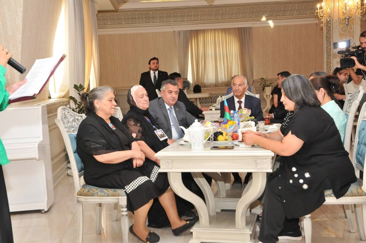 Sonda abşeronlu şəhid ailələri adından Naftalan şəhərindən gələn şəhid ailələrinə və qazilərə hədiyyələr təqdim olunub.