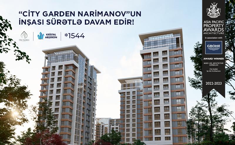 Kristal Abşeron imzası daşıyan və dünyanın ən nüfuzlu müsabiqəsinin qalibi seçilən “City Garden Narimanov” layihəsinin birinci kvartalında bütün binaların tikintisi sürətlə davam edir. Tezliklə ikinci kvartalın inşasına başlanacaqdır.