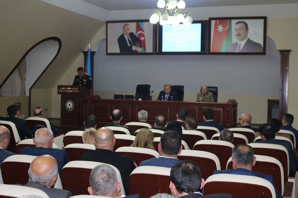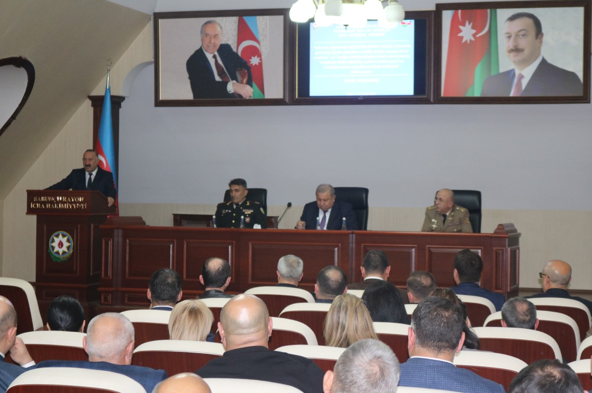 Sonra Bakı Regional Mərkəzinin rəisi general-mayor Məhərrəm Həsənov çıxış edərək yanğın hadisələrinə qarşı mübarizədə maarifləndirmənin rolundan danışıb, yaşayış massivlərində fərdi avtomobillərin nizamsız parklanmasının, məhəllələrə girişlərin qeyri-qanuni maneələrlə məhdudlaşdırılmasının yanğın-xilasetmə əməliyyatlarına əngəllər törətdiyini, onların səmərəliliyini aşağı saldığını qeyd edərək, yerli icra və özünüidarəetmə orqanlarını belə hallarla qəti mübarizəyə çağırıb. O, həmçinin rayon ərazisində mülki müdafiə sahəsində mövcud vəziyyət və problemlər, onların həlli yolları barədə ətraflı məlumat verib.