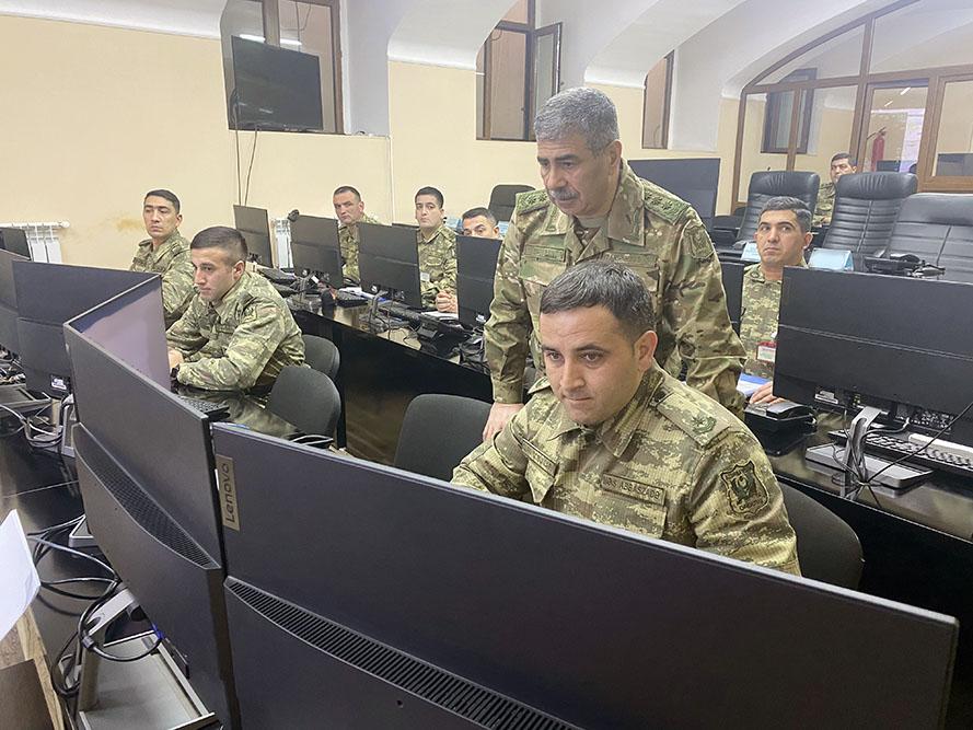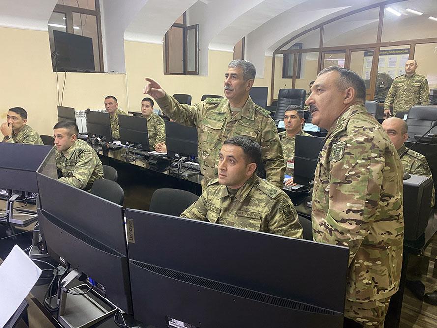 General-polkovnik Z.Həsənov Quru Qoşunlarının Döyüşü İdarəetmə Mərkəzində əməliyyat şəraiti ilə bağlı məruzələri dinləyib, xidməti-döyüş fəaliyyətinə dair müvafiq göstərişlər verib.