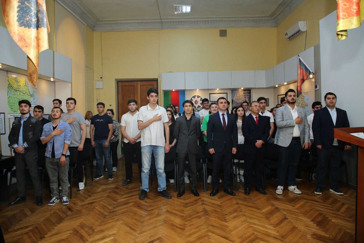 Teleqraf.com xəbər verir ki, Azərbaycan İstiqlal Muzeyində 50-dən çox gəncin iştirakı ilə keçirilən tədbir Dövlət Himinin səsləndirilməsi, Ulu Öndər Heydər Əliyev və Vətənimizin ərazi bütövlüyü uğrunda canından keçən şəhidlərimizin əziz xatirəsinin bir dəqiqəlik sükutla yad edilməsi ilə öz işinə başlayıb.