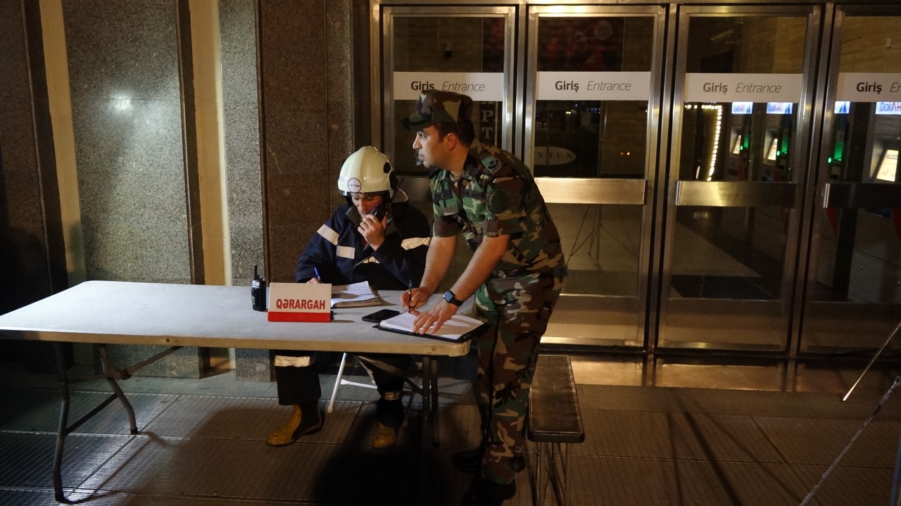 FHN-in mobil yanğın-xilasetmə qrupları tərəfindən fərdi mühafizə vasitələrindən istifadə edilməklə operativ olaraq kəşfiyyat və əməliyyat şəraitinin qiymətləndirilməsi işləri aparılıb, qısa müddətdə şərti yanğın söndürülüb, xilasetmə vasitələri tətbiq edilməklə “zərərçəkmişlər” təxliyə olunaraq onlara “ilkin yardım göstərilib”.