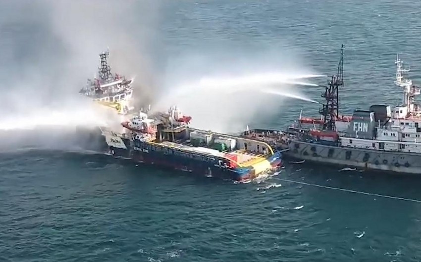 Xəzər dənizindəki təchizat gəmisində baş vermiş yanğın tam söndürülüb.