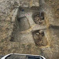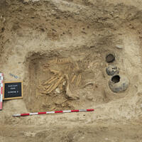 İkinci istiqamət isə Sarısoy kurqanlarıdır. Sarısoy istiqamətində aparılmış arxeoloji qazıntı işləri başa çatdırılıb və maraqlı tapıntılar əldə olunub. Kurqanlar özündə Xocalı-Gədəbəy mədəniyyətinin izlərini yaşadır və bu mədəniyyəti öyrənmək üçün mühüm əhəmiyyət kəsb edən dəfn adətləri mövcuddur. Maraqlı məqam ondan ibarətdir ki, kurqanın çox kiçik - uzunluğu təxminən 1,5 metr, eni 1 metr olan kamera hissəsi var. Kurqanın örtüyü 12 metr, hündürlüyü 1 metrdən azdır. Kameranı tədqiq edərkən 3 ədəd saxsı küp aşkar olunub. Qəbir kamerası şimal-qərb, cənub-şərq istiqamətində qurulub və bir nəfər dəfn olunub. Skeletin üzü cənub-qərbə doğrudur, sağ böyrü üstə və bükülü vəziyyətdədir. Maraqlı cəhətlərdən biri də odur ki, skeletin ön hissəsində kamera boyunca cavan və kiçik yaşında olan ev heyvanı dəfn olunub. Paleontoloqlar tərəfindən baxıldıqdan sonra bu heyvanın kiçik və ya iribuynuzlu olduğu barədə məlumat verilə bilər. Skeletin arxa hissəsi boyunca kiçikbuynuzlu ev heyvanı dəfn olunub ki, bu da böyük ehtimalla keçi və ya qoyundur. Ancaq çox böyük ehtimalla keçidir. Qəbir kamerasında əlavə 10 santimetr də olsa, boş yer yoxdur. İnsan və heyvan sümüklərinin düzümündən sonra kamerada boş yer qalmayıb. Bu da arxeoloji cəhətdən böyük əhəmiyyət kəsb edir və belə qəbir abidələrinin tədqiqi Xocalı-Gədəbəy mədəniyyətində tayfaların dəfn adətlərini, dünyagörüşünü öyrənmək üçün mühüm rol oynayır.