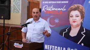 Daha sonra Tənzilə Rüstəmxanlı çıxış edib. Xanım namizəd əsas olaraq Neftçalada olan qadın problemlərinə, onların işlə təmin olunması, qadın hüquqlarının qorunması və bu kimi digər məsələlərə toxunub və ona yüksək etimad göstərilib millət vəkili seçilərsə, bu yolda görəcəyi işlərdən danışıb.