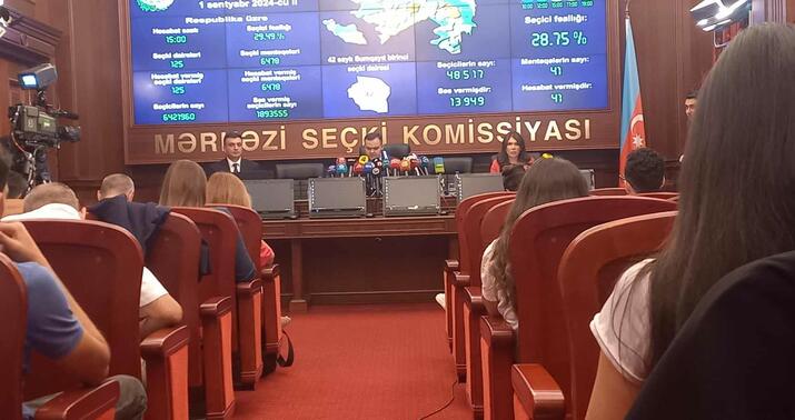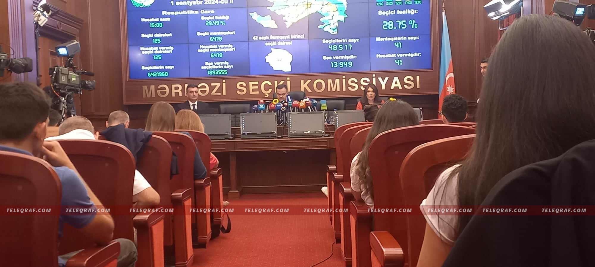 Fərid Orucov bildirib ki, indiyə qədər seçicilərin 29,49 faizi (1 milyon 893 min 555 nəfər) səsvermə hüququndan istifadə edib. Onun sözlərinə görə, hesabat vermiş məntəqələrin sayı 6 478-dir.