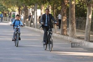 Sədərəkdə müəllim və şagirdlər yeni tədris dərs ilində məktəbə velosipedlərlə gəliblər.