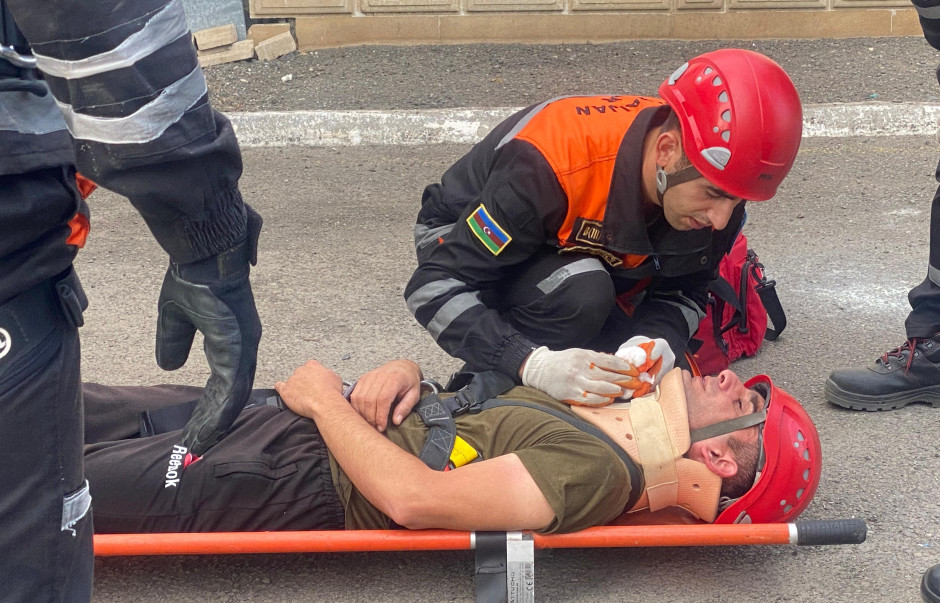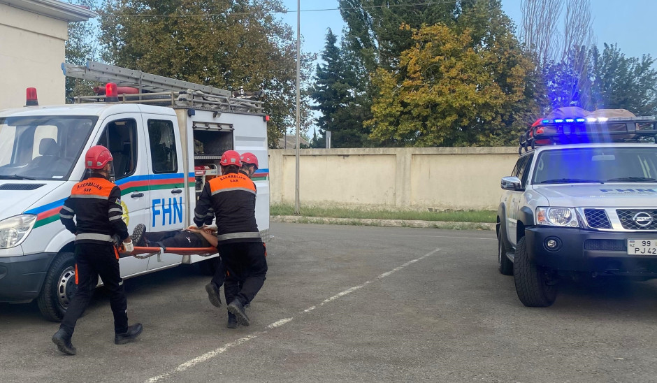 Təlim zamanı xilasedicilər şərti zərərçəkmişləri “hündürmərtəbəli bina”dan təxliyə edərək onlara “təxirəsalınmaz ilkin yardım göstərib”, həmçinin qarşıya qoyulan digər tapşırıqları icra ediblər.