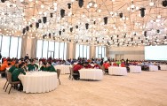 Tədbirdə çıxış edən YAP Sədrinin müavini - Mərkəzi Aparatın rəhbəri Tahir Budaqov bildirib ki, çoxəsrlik dövlətçilik tarixinin ən şanlı və şərəfli dövrünü yaşayan qalib Azərbaycan qazandığı möhtəşəm uğurlar və yaratdığı yeni reallıqlarla bu gün dünyanın diqqət mərkəzindədir: “Ərazi bütövlüyü və suverenliyini bərpa edərək Cənubi Qafqazda yeni təhlükəsizlik və işbirliyi mühiti formalaşdıran Azərbaycan dövləti beynəlxalq müstəvidə etibarlı tərəfdaş, dialoq və əməkdaşlıq məkanı kimi tanınır”.
