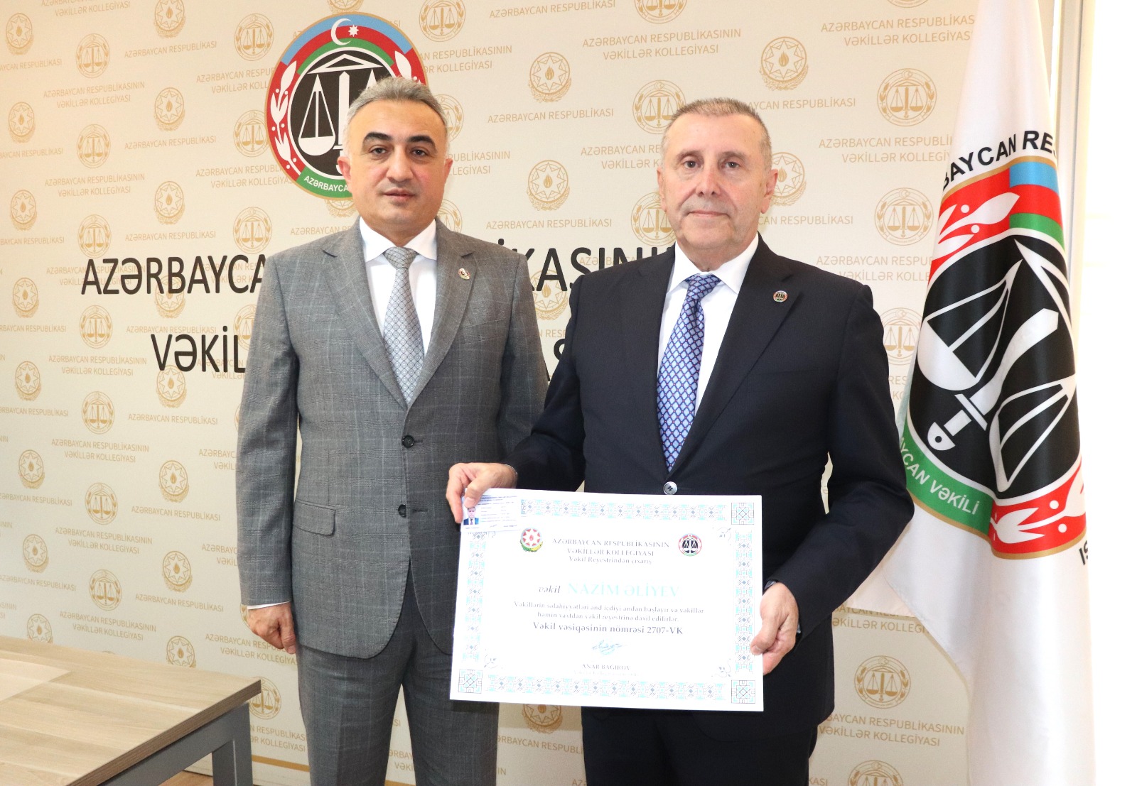 Teleqraf.com-un əldə etdiyi məlumata görə, Vəkillər Kollegiyası (VK) Rəyasət Heyətinin noyabrın 4-də keçirilən iclasında hüquq elmləri doktoru Nazim Əliyevin kollegiya üzvlüyünə qəbul olunması məsələsinə baxılıb və müsbət qərar qəbul edilib.