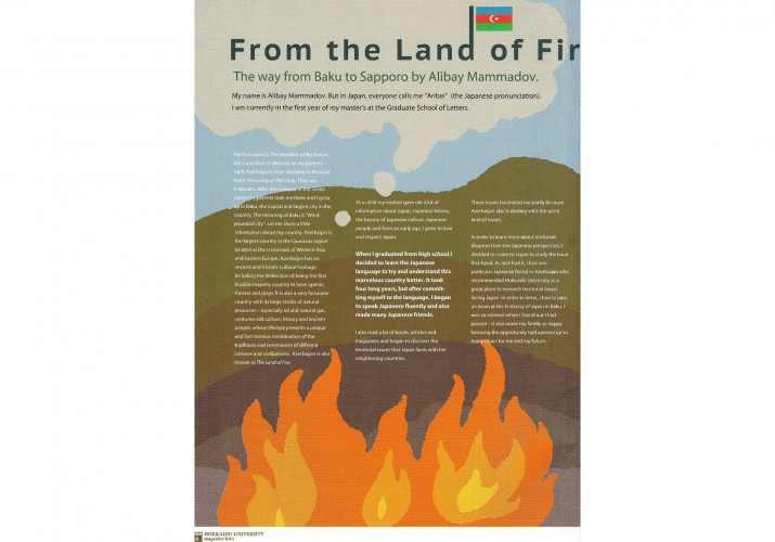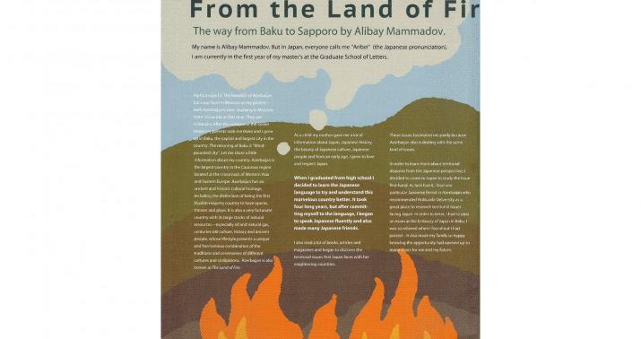 Yaponiyanın “Hokkaydo Universiteti” jurnalında azərbaycanlı magistr Əlibəy Məmmədovun “Odlar Yurdundan qarlar ölkəsinə” adlı məqaləsi dərc olunub. Universitetin Əcnəbi Tələbələr Assosiasiyasının sədri olan həmvətənimiz məqalədə Azərbaycan, onun coğrafi mövqeyi, paytaxt Bakı şəhəri, müstəqilliyin bərpa olunması tarixi, qədim və zəngin mədəniyyətimiz barədə yapon oxuculara ətraflı məlumat verir.