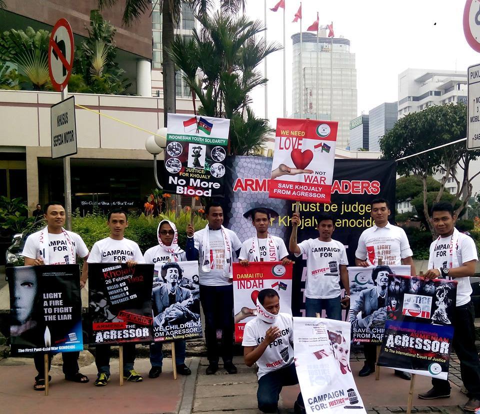 İndoneziyada keçirilən etiraz tədbirlərində Müsəlman Tələbələr Assosiasiyası və İndoneziya İslam Gənclər Hərəkatı kimi aparıcı gənclər təşkilatlarının fəalları da iştirak ediblər. Gecə saatlarında isə gənclər kampaniyanın bu il elan etdiyi “Yalanla mübarizə üçün alov yandır” (Light a Fire to Fight the Liar) devizi altında Xocalı faciəsində qətlə yetirilmiş 63 uşağın ruhunun xatirəsinə ehtiram əlaməti olaraq ölkə parlamentinin önündəki meydanda 63 şam düzüblər. İndoneziyada bu günlərdə Xocalı ilə bağlı keçirilən tədbirlər mətbuatda geniş işıqlandırılıb.